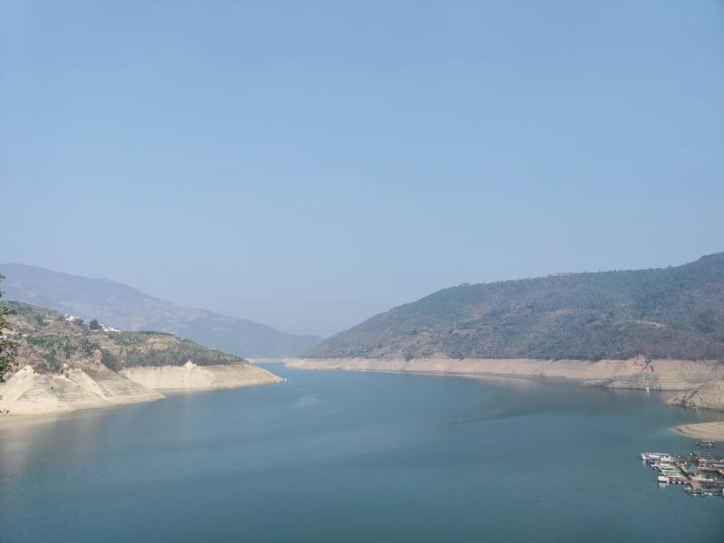 翻过一个小山头,眼前一片开阔,小湾电站百里长湖呈现在大家眼前。