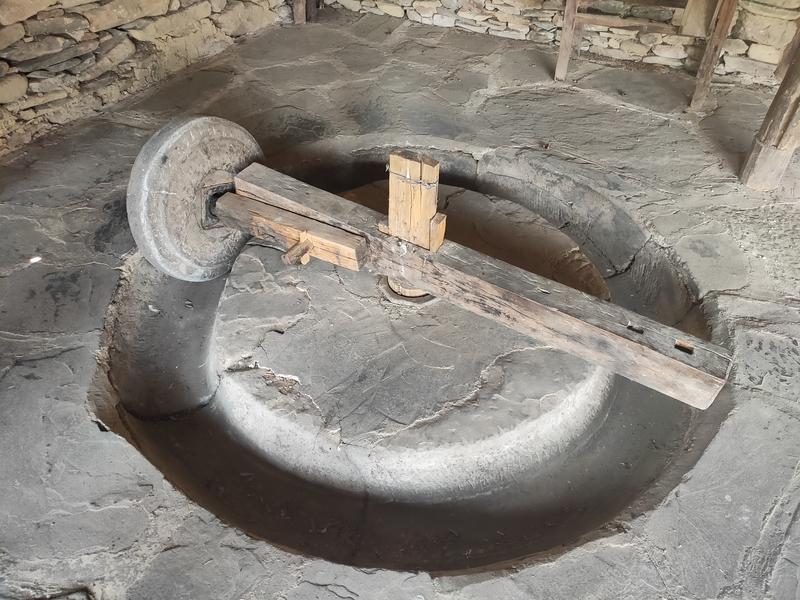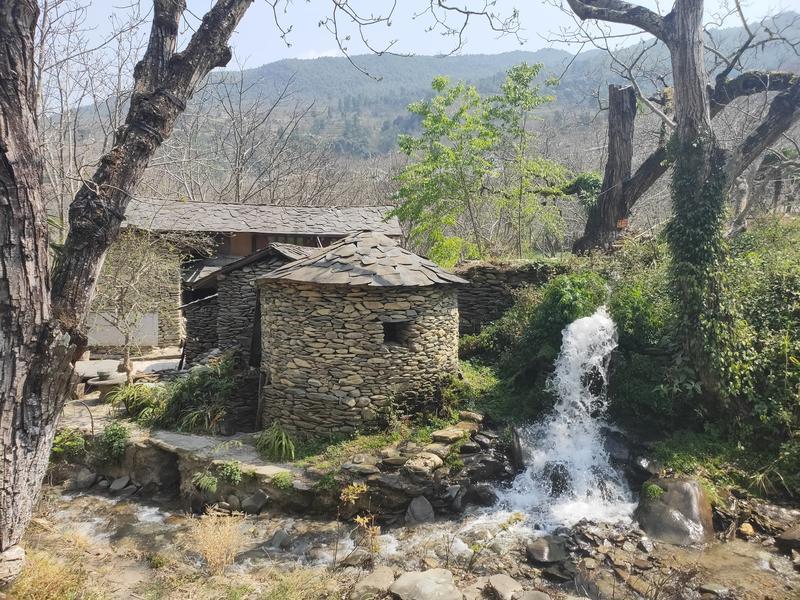 稍作休息后,调研小组继续出发,第一站到达位于凤庆县诗礼乡的古墨村,村里保留着许多与“石”有关的古磨坊群和传统民居建筑。据了解,这里最早的水磨房建于清朝嘉庆年间,现存磨房33间,其中可使用的有19间。