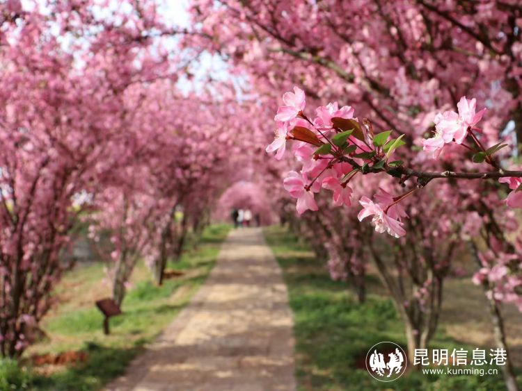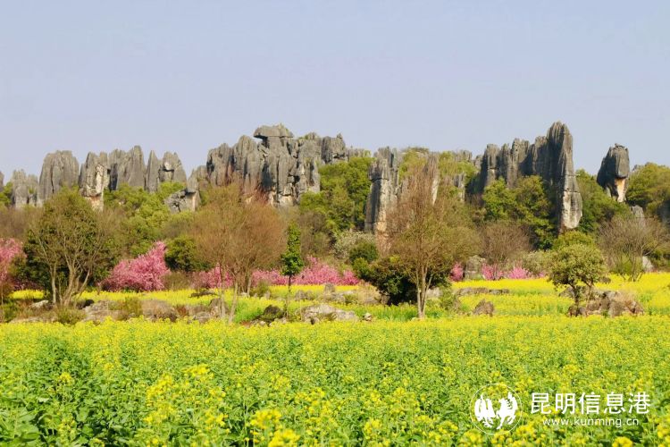 乃古石林是石林世界自然遗产地的核心保护区,为国家4A级旅游景区,具有得天独厚的喀斯特地貌和优美的自然环境。每年3月,景区内的油菜花、垂丝海棠、樱花竞相绽放,绵延千米的拱形垂丝海棠形成粉色的鲜花隧道,被人们称为“幸福大道”,穿过隧道,映入眼帘的便是千亩油菜花形成的金色花海。据悉,今年的油菜花预计于3月中旬盛开,花期可持续至4月初。