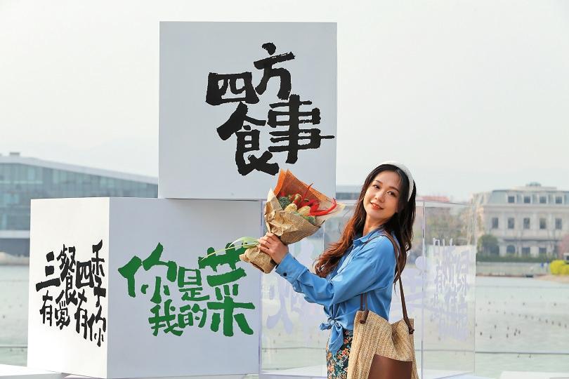 市集上除了有各类农副产品售卖,还有蔬果制作的花束以及创意视觉打卡点,摊位上“只有娇绿、没有焦虑”“三餐四季 有爱有你”等标语彰显着青年人的生活态度,让市集兼具艺术感与烟火气。