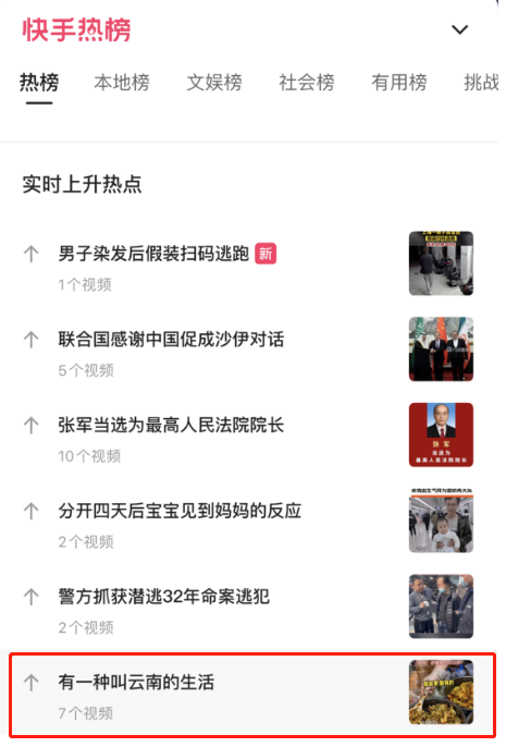 快手平台上,话题#有一种叫云南的生活# #有一种日落叫云南的日落#相关视频播放量超1300万次。