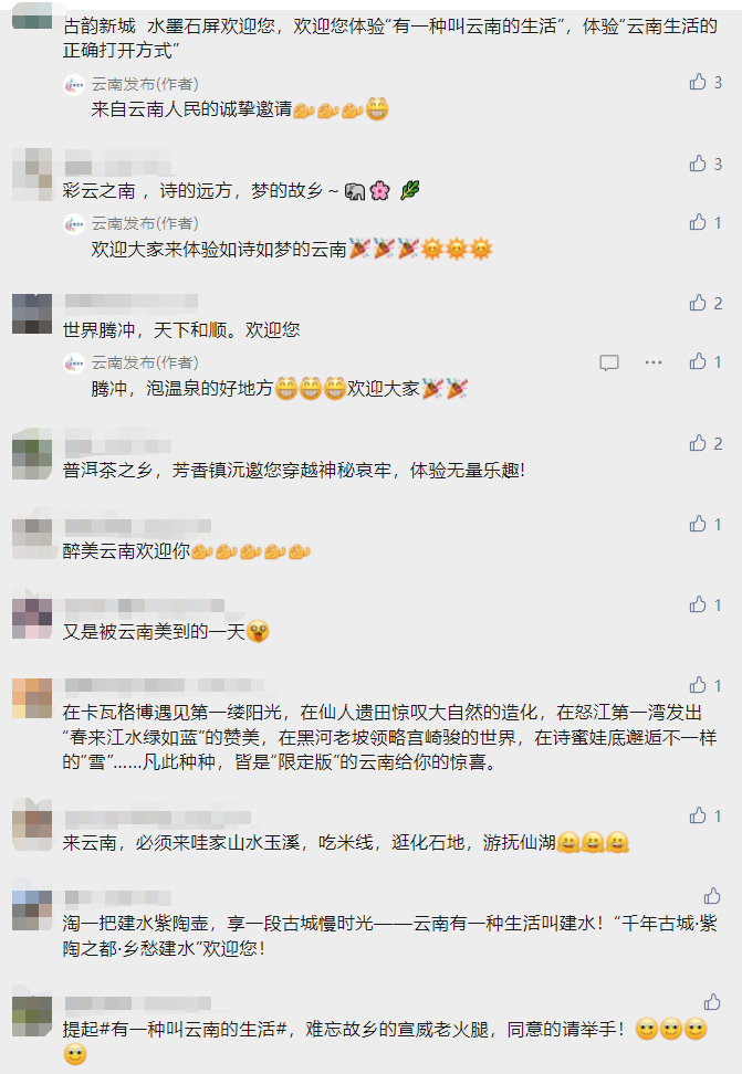 与此同时,云南发布、昆明官渡发布、云南红河发布、玉溪发布、大姚发布等云南政务新媒体矩阵共同发力,同步推介“有一种叫云南的生活”的相关内容,让“有一种叫云南的生活”成为所有人的心之所向、行之所往。