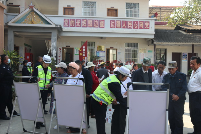走进村寨宣讲,消除普法盲区。交警大队组织警力深入社区、村委会、村民小组,通过摆放宣传展板、发放宣传资料、接受群众咨询、讲解事故案例的方式,并充分结合乡村部分老年人无法使用汉语沟通交流的实际,采取汉佤双语向广大群众普及道路交通安全法律法规,教育引导群众自觉抵制交通陋习和交通违法行为,提高文明出行意识,养成文明参与交通的良好习惯。