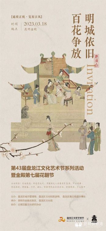 本次花朝节活动,由盘龙区城市管理局、盘龙区文化和旅游局、 盘龙区青云街道办事处主办,昆明市金殿名胜区、盘龙区文化馆承办,云南汉服文化研究协会协办。