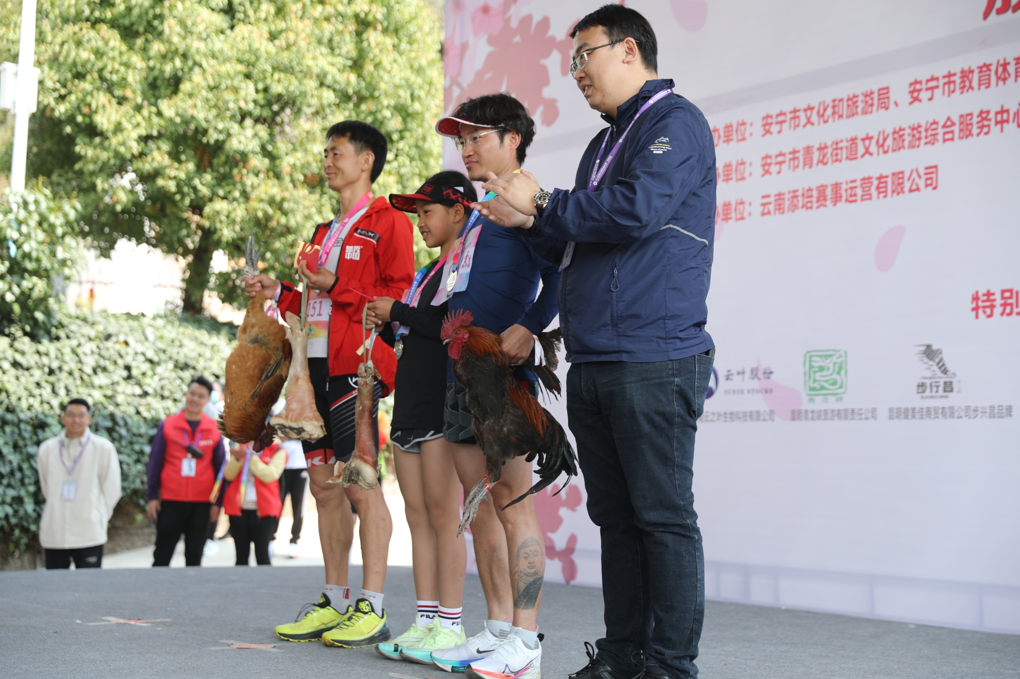 赛事奖品紧扣“农旅融合、振兴乡村”这一主题。凡跑完比赛的选手即可获得一个完赛大礼包,包括完赛奖牌1个、青龙峡景区门票1张、农家有机蔬菜1份、鲜花果汁1瓶。在此基础上,比赛前10名选手还可获得现金奖励,前三名还可叠加获得生态田园鸡和猪脚。同时,所有选手均可参与现场抽奖环节,包括华为手表手机1部、华为智能手环5支、华为运动耳机3副、水杯5个、空气净化器3台、负离子机3台、生态田园鸡20只,共计40件奖品。