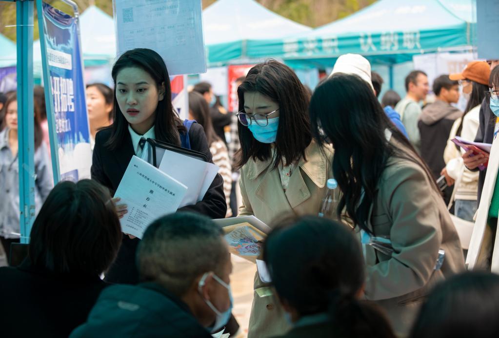 得知学校举行招聘会,云南师范大学大四学生杨雪梅,特意精心准备了15份简历,并提前了解重点用人单位信息。在招聘会现场,她详细咨询了几所学校的招聘情况。“我的理想是当一名老师,没想到下午就有一所学校通知我面试。”