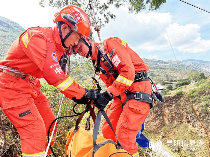 训练过程中,李小平带领队友们结合永胜县境内山谷、河流沟壑众多的实际环境,重点开展了T型救援、横向救援、竖井救援以及悬崖烟点处置。全体指战员严格要求自己,动作干脆迅速,配合默契。