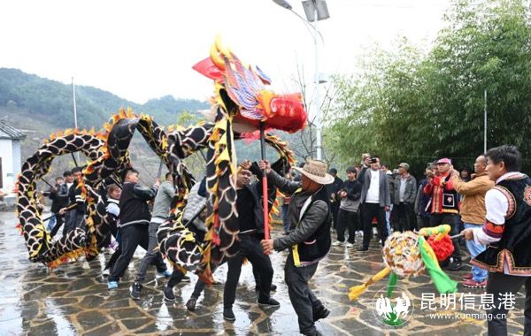 顺利对上调子的客人,村民会敲锣打鼓,舞起龙灯,用满满的热情欢迎四方宾客进村。顺着村口往里走,各式各样的小摊摆满道路两旁,一派繁荣的闹市景象,村中广场上挤满来参加盛会的各族群众,穿戴着各族节日盛装的群众上演着一场场精彩的文艺表演,气氛渐渐浓烈起来。