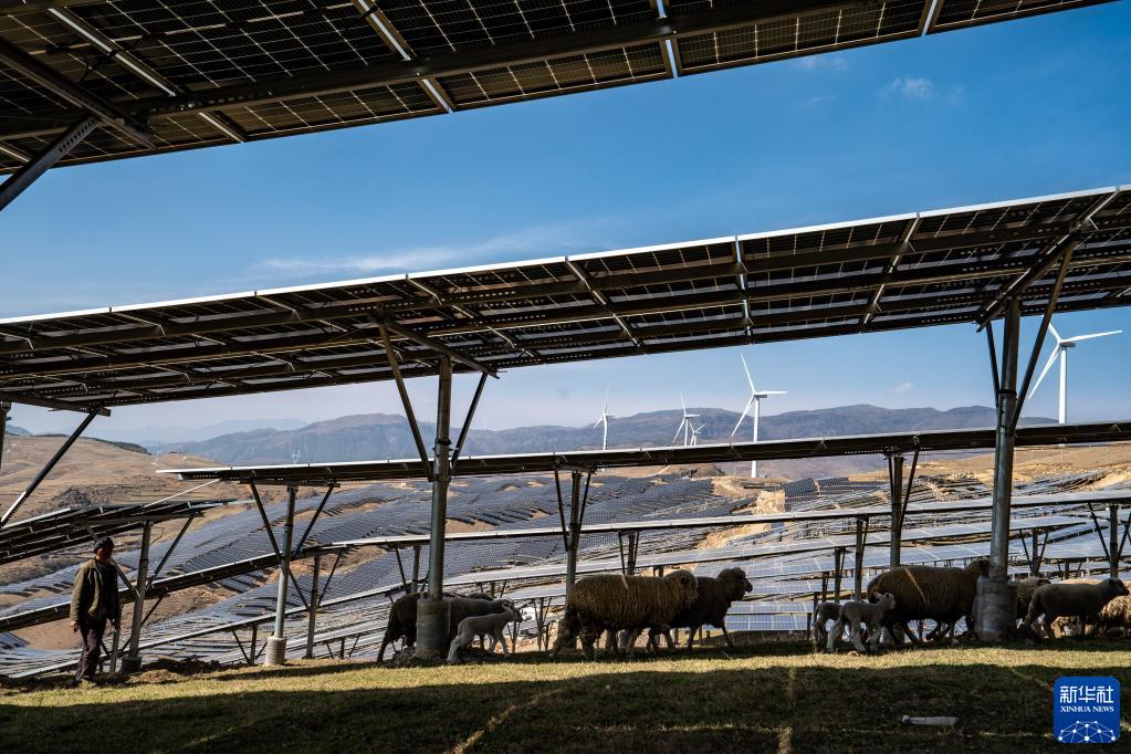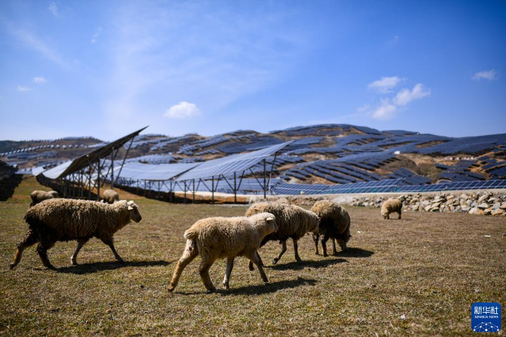 羊群在云南省巧家县海堤光电站吃草(3月19日摄影)。