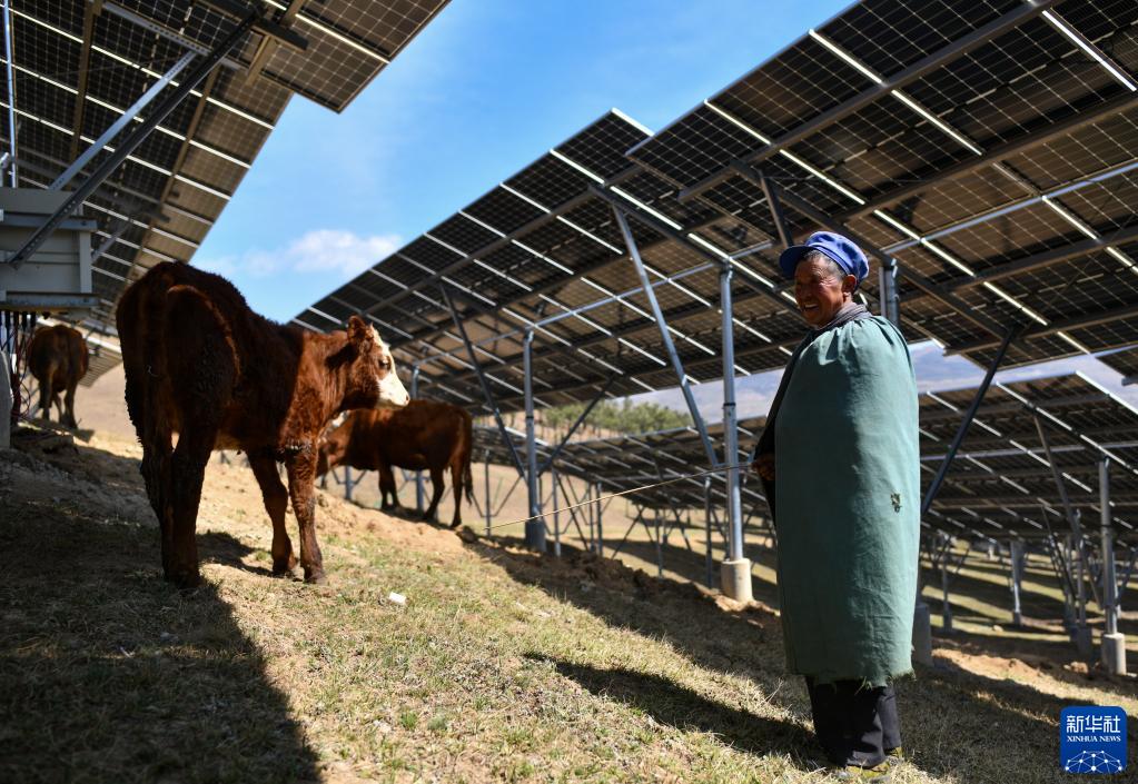 村民杨元聪在云南省巧家县海堤光电站放羊(3月19日摄影)。