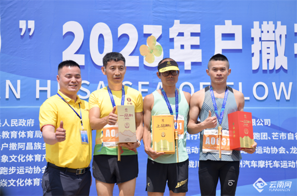 大美陇川”2023年户撒花海马拉松经过激烈角逐,最终来自临沧凤庆吴泓龙以2小时45分钟15秒的成绩获得男子全程组第一名;杨定荣获得女子全程组第一名。明丽提、熊守存分获男子半程组、女子半程组第一名。麻云强、欧阳明娣则摘得10KM男子组和10KM女子组第一名。