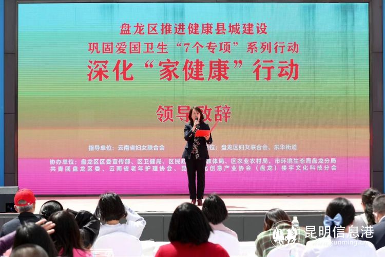 盘龙区人民政府党组成员、副区长,区妇儿工委主任蒋晓庆致辞中介绍,自“家健康”行动实施以来,盘龙全区上下同心、迎难而上,围绕新冠疫情防控、文明城市创建、婚育新风及民俗家风宣传等重点工作,开展巾帼志愿服务140场,累计服务妇女群众14100余人次。