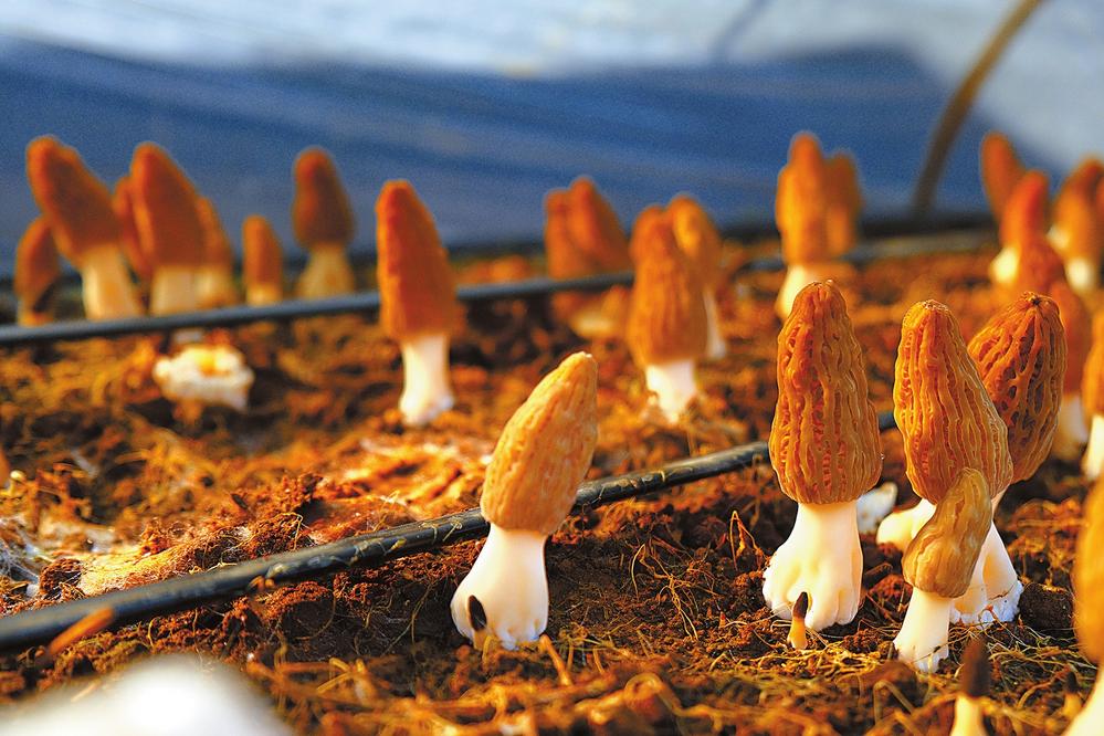 裕茸峰种植专业合作社负责人李孟芩说:“这是去年11月种下的首批羊肚菌,采摘期可持续到4月底,每亩可采摘300公斤,每亩收入3.6万元左右,主要销往昆明和北上广深等地区,一上市就供不应求。”去年,哪吐村食用菌种植面积达140亩,累计产量500余吨,产值300余万元。