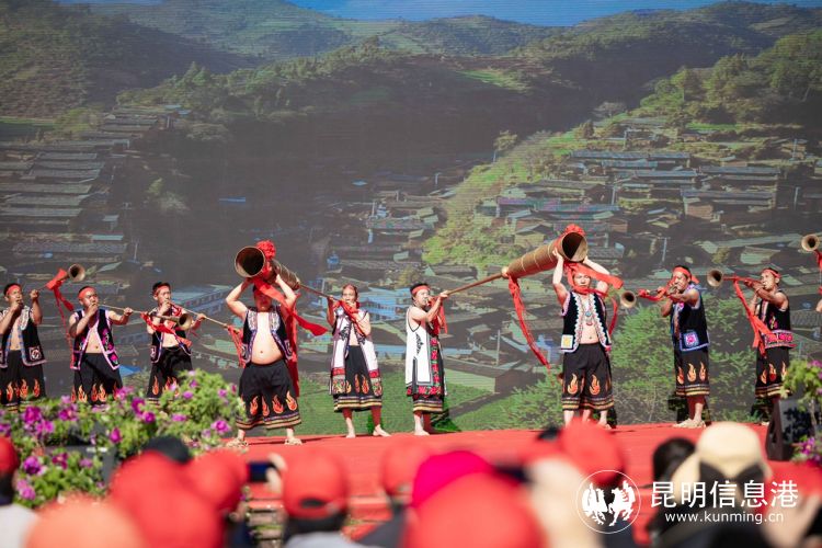 骄阳下的广场聚满了上万观众,彝族汉子架着长号登上舞台,雄浑的号声吹响节庆的序幕,热情的酒歌欢迎着四面八方的宾朋。来自省、县艺术院团的演员用精心创作的歌舞演绎着武定的民族风情和牡丹的雍容。《绽放》则将武定传承千年的彝绣赋予时尚的脉动,献上一场绚丽的民族服饰秀。