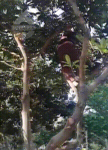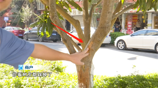 商户:“他们就从这个地方踩着上树了,你看树皮都踩掉了,像这些地方他伸手就能够到。”