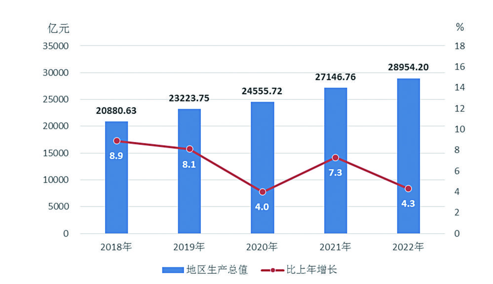 2022年,面对复杂严峻的形势,在以习近平同志为核心的党中央坚强领导下,全省上下坚持发展第一要务,高效统筹疫情防控和经济社会发展,积极应对多重超预期因素冲击,快速精准落实稳经济一揽子政策和接续措施,坚持难中求进、干中求进、变中求进、稳中求进,全力稳增长稳市场主体保就业,稳住了宏观经济大盘,经济运行稳中有进、进中提质,经济总量持续扩大,发展质效稳步提高,高质量发展取得新成效,经济平稳恢复向好态势良好。