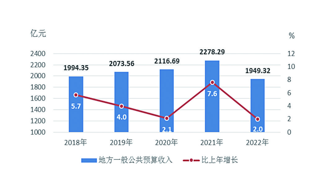 图2 2018-2022年云南地方一般公共预算收入及增长速度