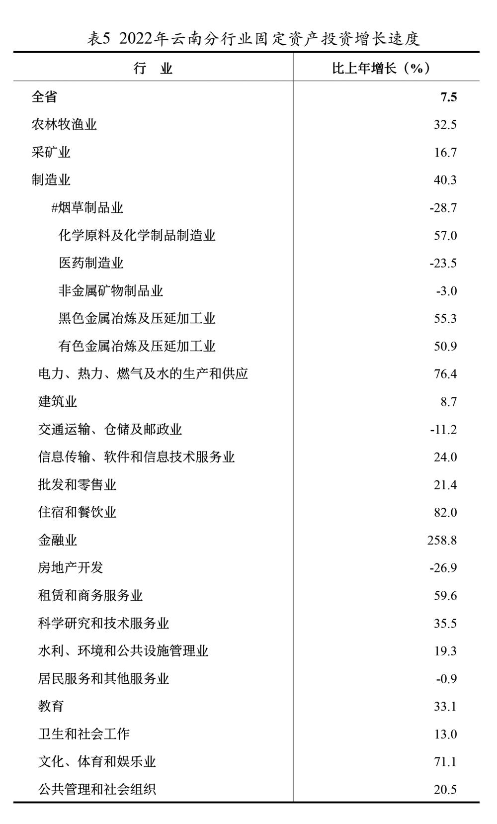分行业看,烟草制品业比上年增长5.8%,电力、热力生产和供应业增长2.2%,有色金属冶炼和压延加工业增长15.7%,计算机、通信和其他电子设备制造业增长58.0%,石油、煤炭及其他燃料加工业增长0.3%。