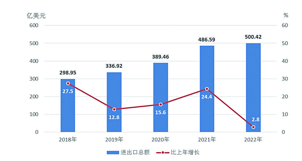 全年外贸进出口总额500.42亿美元,比上年增长2.8%。其中,出口总额241.39亿美元,下降11.7%;进口总额259.03亿美元,增长21.4%。