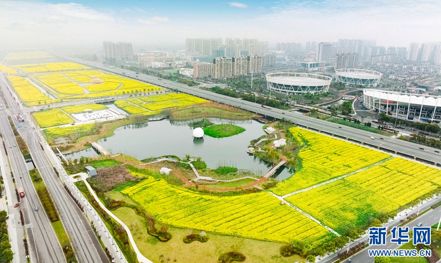 近日,浙江乐清现代都市田园综合体内2300亩油菜花竞相绽放,连片金黄色的油菜花海装扮着大地,吸引了众多游客前来赏花游玩,感受春日之美。