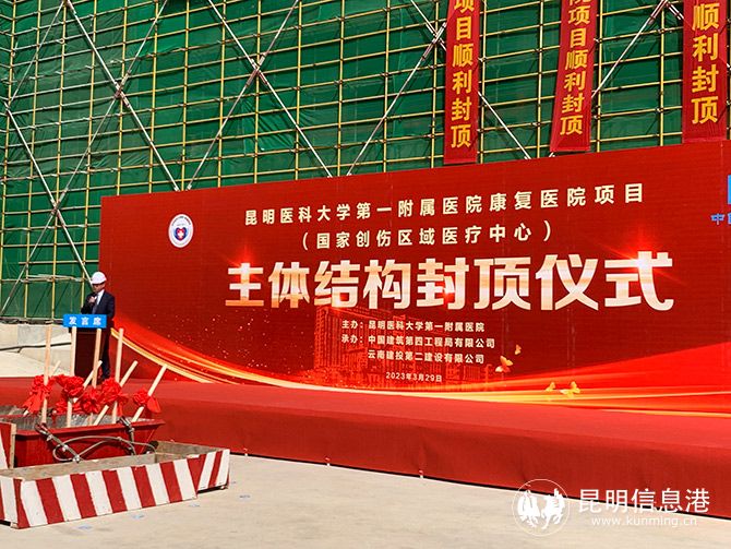 6686体育讯 记者孙红亮 3月29日上午,昆明医科大学第一附属医院康复医院项目(国家创伤区域医疗中心)主体结构封顶仪式在呈贡举行。