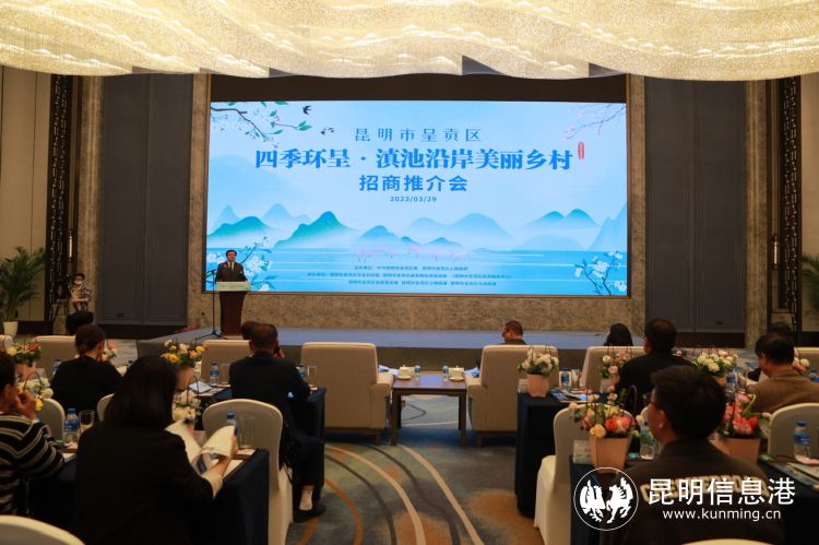 会上对昆明市打造滇池沿岸46个重点村中的呈贡卧龙浦古渔村和斗南村,以及呈贡区乡村振兴产业融合示范园项目进行了招商推介。