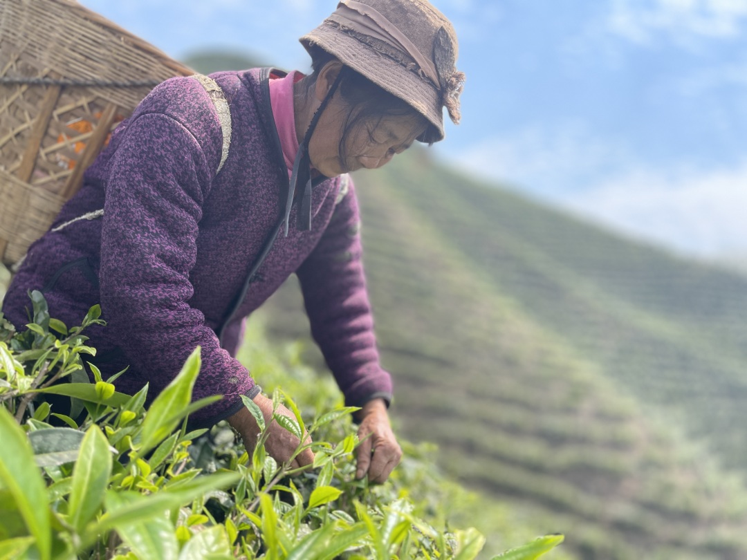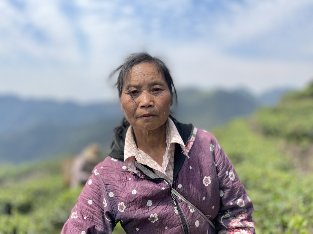茶农 游志玉:我们老了出不去打工,就在这里跟谢老板做工,一年有一万元左右的收入。
