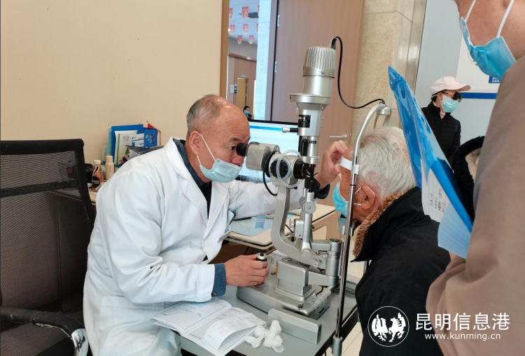 图为昆明艾维眼科医院副院长和志清正在为其他患者检查