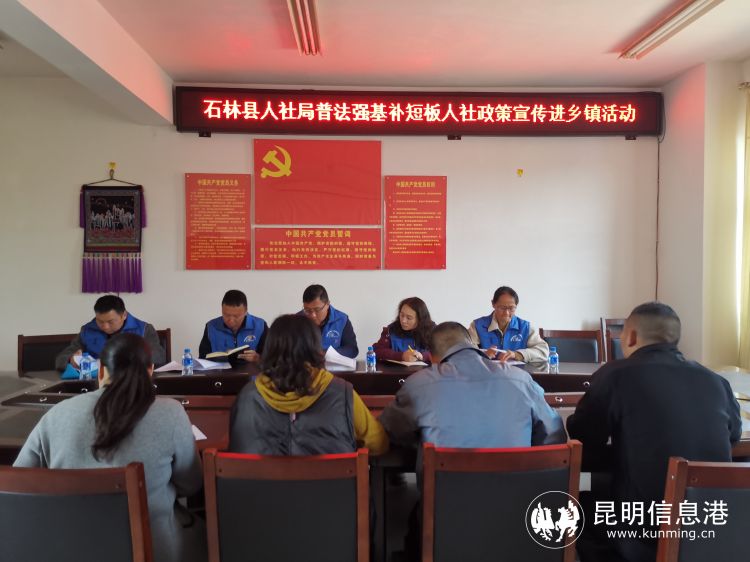图为石林县人社局普法强基补短板人社政策宣传进乡镇活动