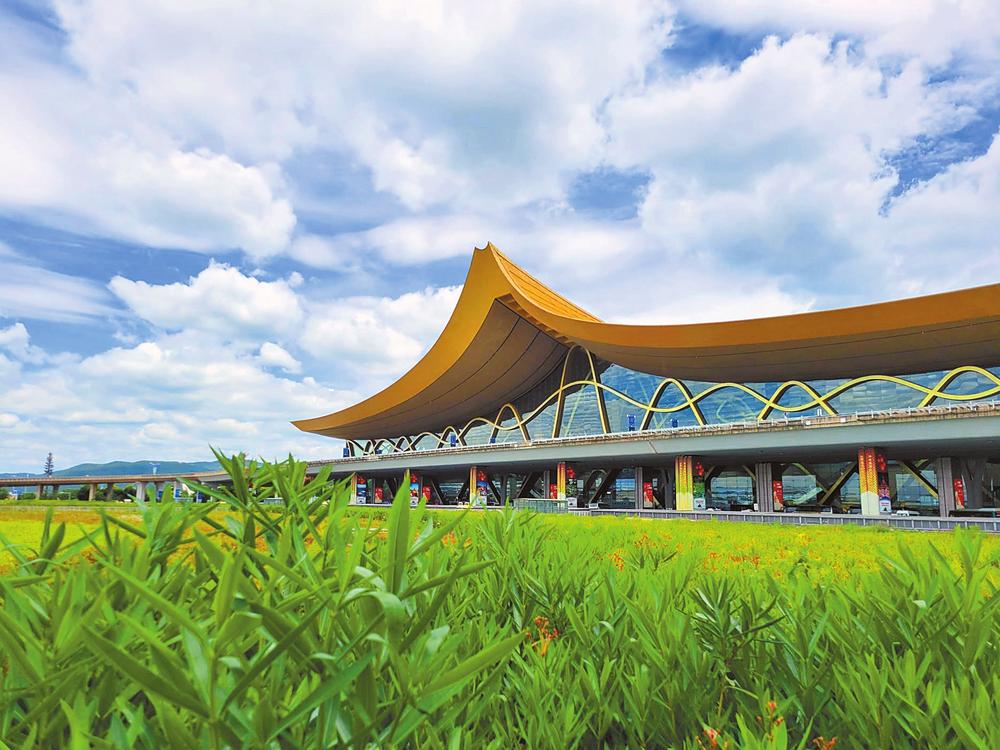 西双版纳机场1990年建成通航,共完成了3次改扩建工程,属国家一类口岸,云南省第二个国际机场。目前共有22家航空公司在西双版纳机场运营,开通国际国内航线66条,其中国际航线最高5条,辐射老挝、泰国、柬埔寨3个国家,通航城市56个。长期以来,西双版纳机场贯彻绿色发展、“减排”先行的理念,通过近机位全部安装桥载设备、高杆灯节能改造工程、采用EPSS中央空调系统节能技术、机场中水回用工程等,节能降耗成效显著。开展“绿美机场”建设专项行动以来,西双版纳机场飞行区绿化覆盖率达到72.94%,航站区绿地率近50%,机场降碳减排和固碳增汇能力进一步提升。