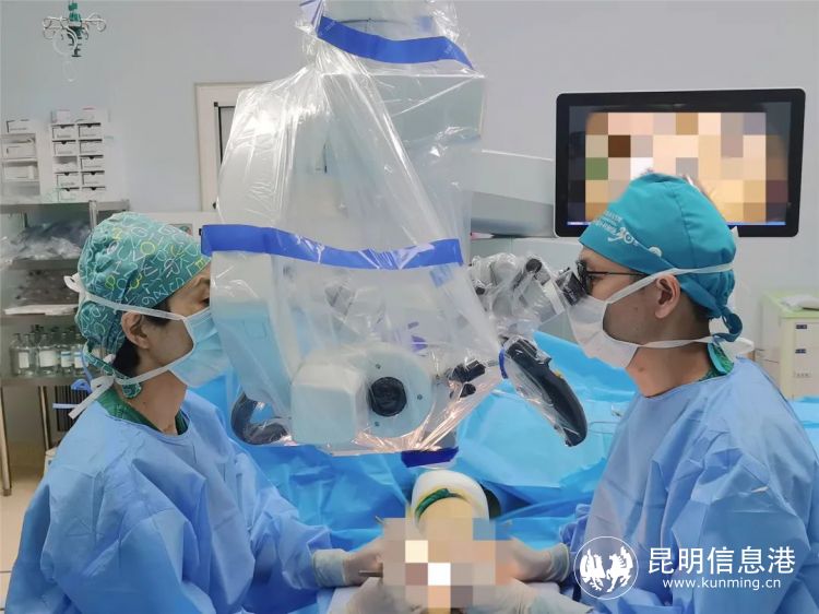 图为医生行超显微下淋巴管-静脉吻合手术(LVA)中