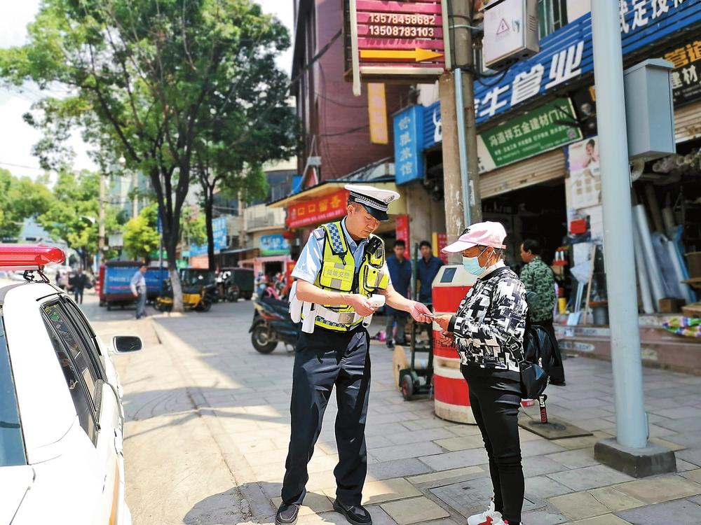 夏绍能向群众宣传交通安全知识。本报通讯员 摄