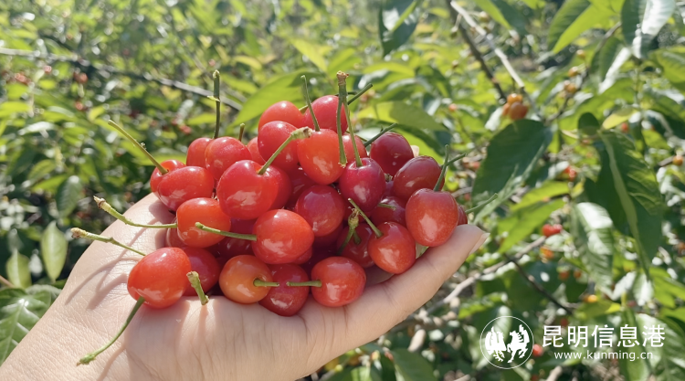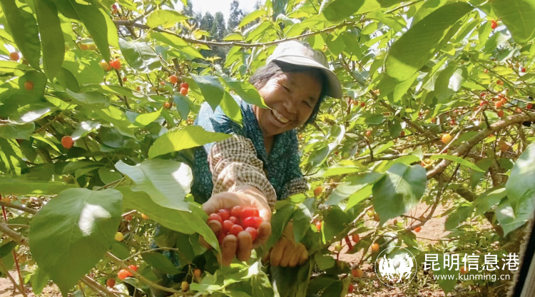 据悉,由于气候、地理位置等因素,米户樱桃在省内最先成熟上市,每年4月初开始采摘,采摘季可一直持续到五一节后。目前,全村95%农户参与樱桃产业,种植“中国红”“红玛瑙”品种樱桃面积1万余亩,年产樱桃2500余吨,实现年产值3000余万元。2020年,米户樱桃还获得了云南省及昆明市农产品“三品一标”绿色食品认证。