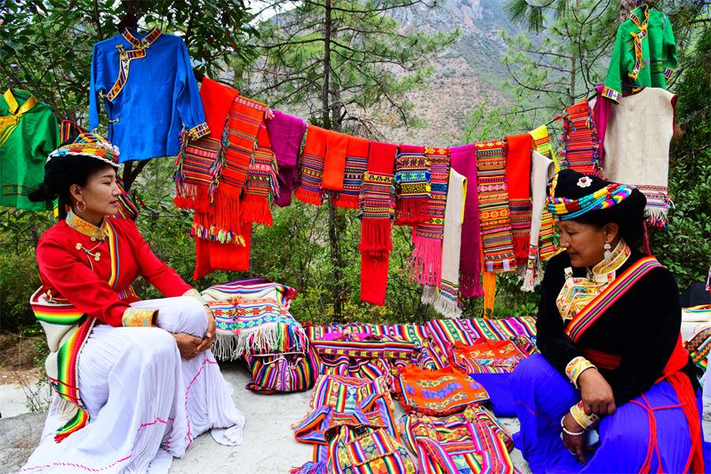 同日,在黑尔甸拈达山的山脚,还进行了宁蒗县非遗代表性传承人作品展。展区主要展示了拉伯乡具有代表性的4种民族服饰,通过展示,观展者对苗、汉、普米、摩梭服饰的纺织原料、工艺程序、图案运用、色彩搭配等进行了深度了解。除此之外,在举行民俗活动的同时,普米族民间艺人还对传统民歌、舞蹈等多种多样的传统文化进行了展示、展演,展现出乡村的别样魅力。