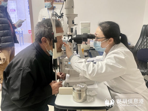 图为昆明艾维眼科医院青白科主任范黎妮为张伯伯看诊
