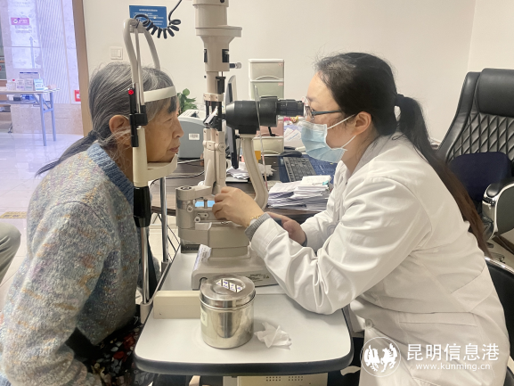 图为昆明艾维眼科医院青白科主任范黎妮为黄阿姨看诊