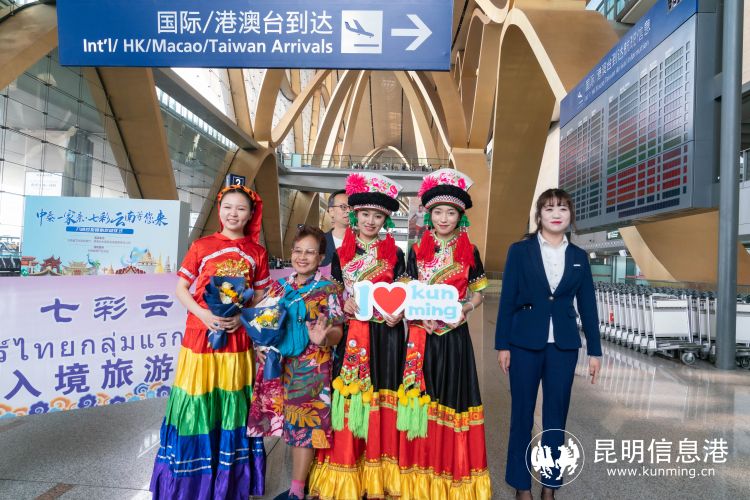 在泰国入境首发团抵达昆明机场后,由省文旅厅、昆明机场主办,省旅游协会协办,共同组织了以“中泰一家亲 七彩云南等您来”为主题的简短欢迎仪式,进一步展现了云南友好热情的人文环境,为云南入境游市场重启营造氛围,也为云南的旅游作出积极的宣传作用。