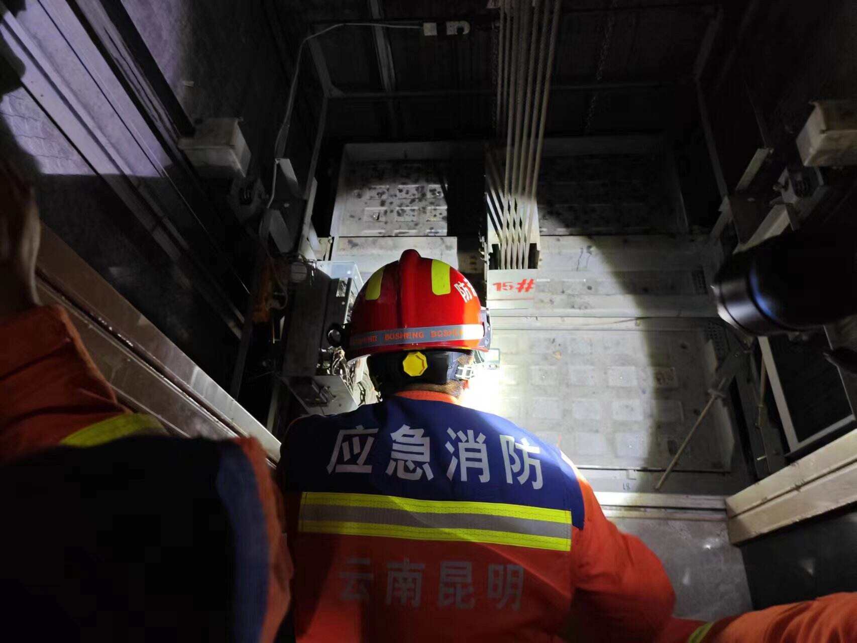 4月8日17时2分,停电导致昆明市呈贡区绿地·东海安·海逸名苑小区有多名人员被困于电梯内,情况紧急,急需救助。呈贡区消防救援大队接警后,紧急调派彩云南路站2车10人、大学城站1车7人前往处置。