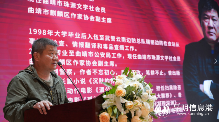 随后,电影《百战归来》编剧罗田俊先生提到激发他创作《百战归来》是因为他想向曾经牺牲的战友致敬,向退伍军人致敬以及通过这部影片让更多的观众了解军人的飒爽英姿和坚定的信念。他提到这是一部反映真实情况,结合个人英雄主义以及团队作战的富有热血、激情的军事动作电影,他希望通过《百战归来》能让更让更多的人了解云南电影的风采。