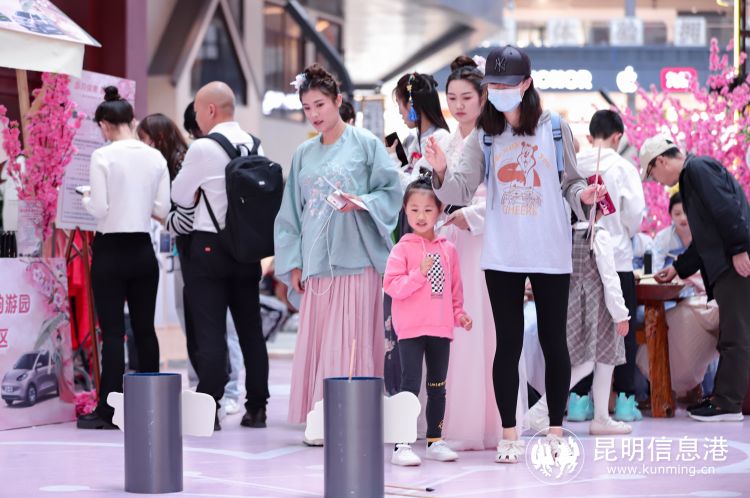 6686体育讯 记者上官艳君 4月8日,在昆明海乐世界购物广场,一场国风缤果 雅韵游园的缤果古风派对拉开帷幕。