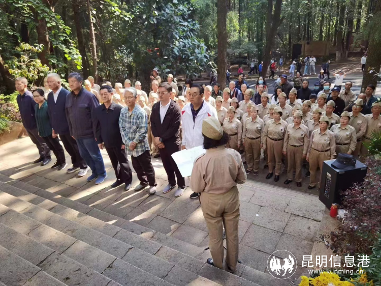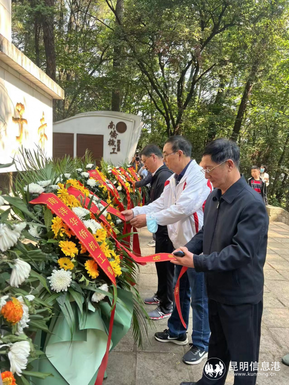 上午十时整,参加祭奠活动的致公党党员早早相聚在南洋华侨机工回国抗日纪念碑前,由致公党昆明市委专职副主委高云龙作为活动代表发表了悼文致辞,大家逐一向纪念碑敬献鲜花,随后由南侨机工合唱团在碑前演唱三首“南侨颂”。演唱最后,在全体大合唱“我和我的祖国”中现场气氛达到了高潮,爱国主义的旋律高高飘扬,闻者动容。祭奠活动结束后大家还参观了“南侨机工事迹陈列室”。