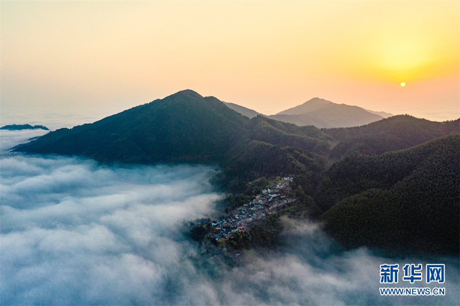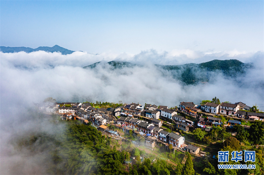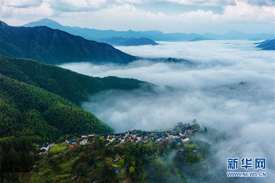 近日,雨后初晴的安徽省休宁县溪口镇木梨硔古村出现大面积云海。