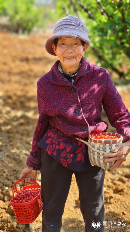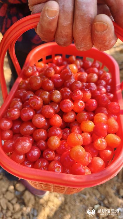 欣赏完了入村口的美景,往村子里深入,青瓦白墙的李氏宅院安坐一隅,堪称滇中民居建筑的精品。这里的村民家一家挨着一家,每家每户的房前屋后和田地间都种植了樱桃树,多则10余亩,少则3、4亩。而4月正好是樱桃成熟时节,只见一棵棵樱桃树上,色泽鲜艳、晶莹剔透、红如玛瑙的樱桃缀满枝头,香甜的气息和丰收的喜悦从田野一直飘到了小红祥村口。