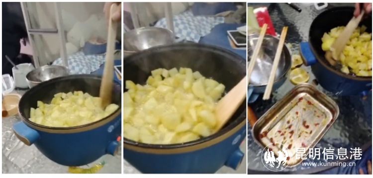 据了解,视频里炸洋芋的这名同学是楚雄某学校的学生,由于当晚腹中馋虫作祟,于是想到了自己在宿舍里使用电热锅制作炸洋芋来解馋。为记录这一“美好时刻”,这名同学还把整个过程用手机拍摄了下来,并配上了BGM,制作了一期“舌尖上的宿舍”发到了抖音短视频平台上。