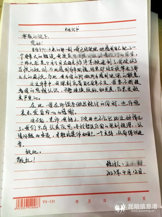 接到网友们的举报后,楚雄市消防救援大队大队长柴小龙带队上门,在学校管理人员的配合下,找到了这名同学,对这名“馋虫同学”及其舍友进行批评教育,并给他们上了一堂校园消防安全课。经过消防部门和学校的教育,这名同学和舍友认识到在宿舍使用电热锅的危险性,懊悔地写下了检讨书,并承诺在今后的学习生活中互相监督、互相帮助,不会再在宿舍内违规使用大功率电器产品。学校也趁热打铁,在校园内开展安全教育,以“违规电器展”等形式,宣传在宿舍内使用大功率电器的危害和有可能造成的严重后果。
