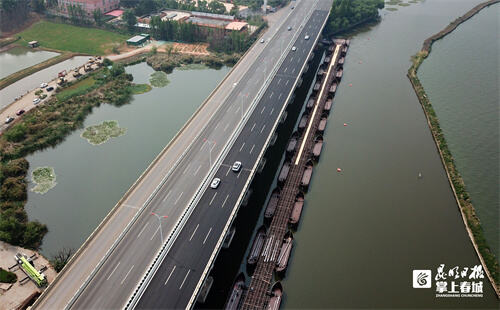 4月16日下午,在滇池绿道高海高速桥下空间段,随着草海浮桥船体接连路面钢板的最后一颗插销完成安装,云南第一座钢浮桥主体实现贯通。这也标志着23公里的滇池绿道环草海段实现全线连通。