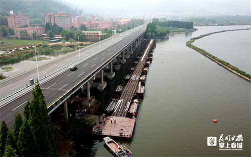 施工单位中建六局滇池绿道项目部负责人介绍,施工单位在浮桥实施过程中采取提前在工厂预拼装方案,按照顺序组织生产、运输和安装,从而减少现场焊接和切割等施工环节,加快施工进度。