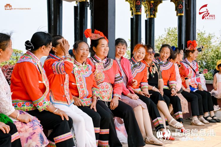 在华亭寺、凌虚阁等景点,来自各地、各族群众自发组织的滇剧花灯、官渡小调、民族歌舞等丰富多彩的民族民间文化活动更充分体现了“三月三耍西山”的独特魅力。不少游客在拍照之余还亲身参与其中,与大家一同起舞。