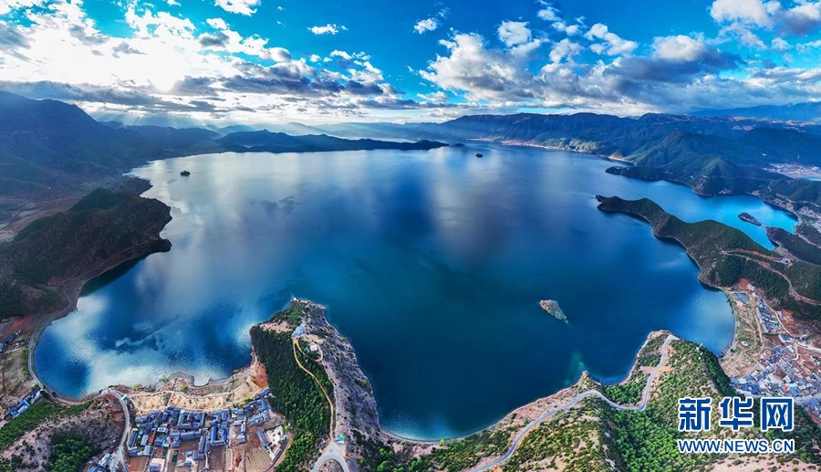 航拍视角下的泸沽湖美景。新华网发 崔永江/摄