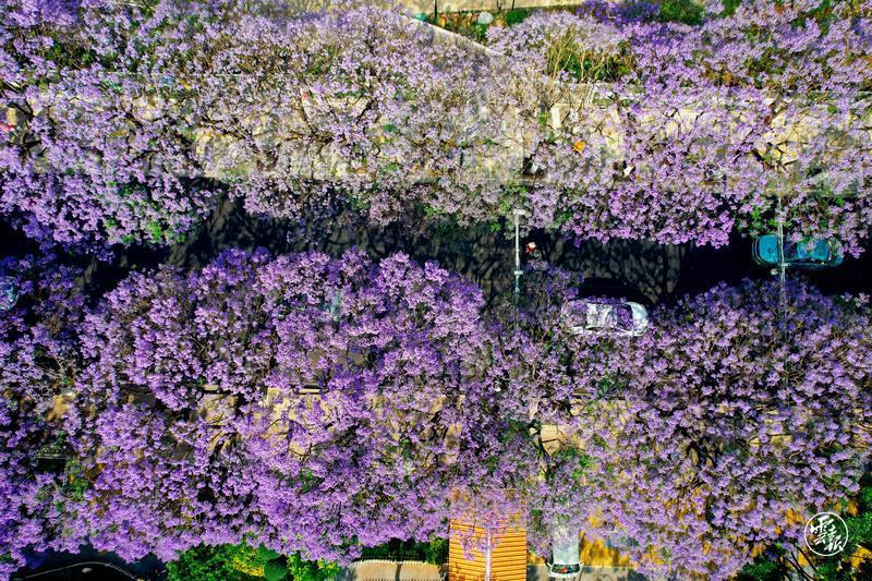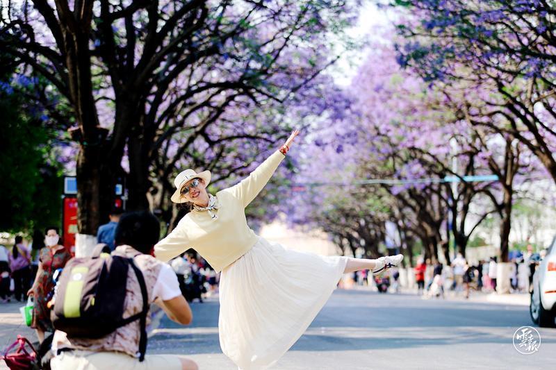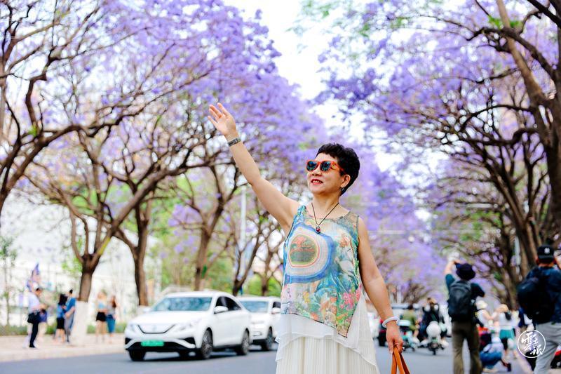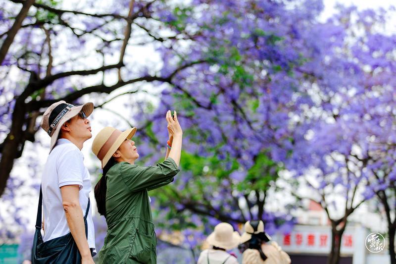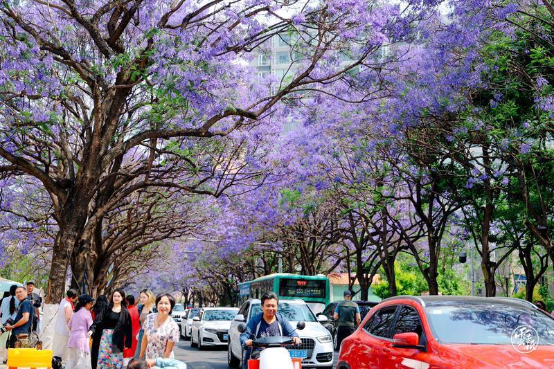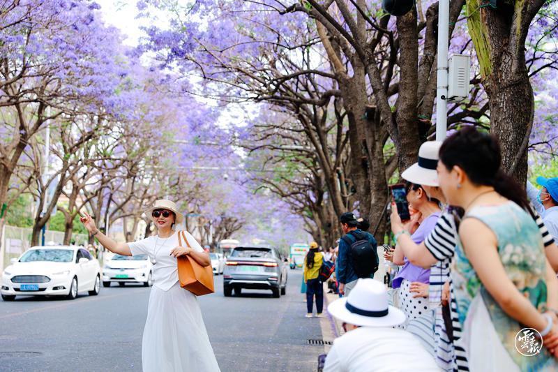 蓝花楹盛开的季节,春城昆明处处涌动着醉人的蓝紫色花潮。4月23日,位于教场中路的蓝花楹大道游人如织,花海映人潮,浪漫无比。